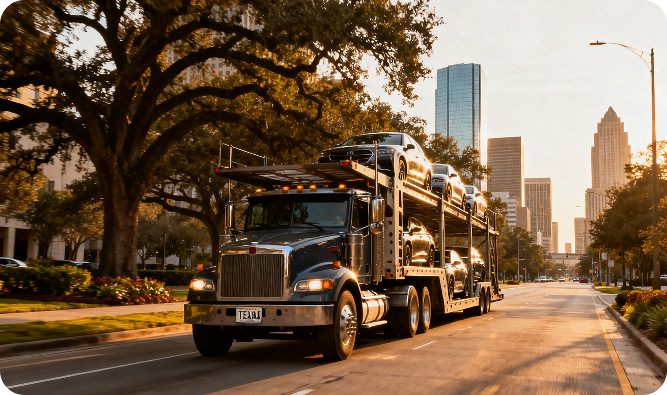 We provide convenient door-to-door car transportation services throughout Houston. Your vehicle is picked up from a chosen address and delivered to your new destination — no terminals, no complicated logistics.