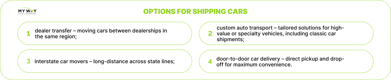 Professional companies like My Way Auto Transport offer tailored solutions for new, used, and classic car transport.